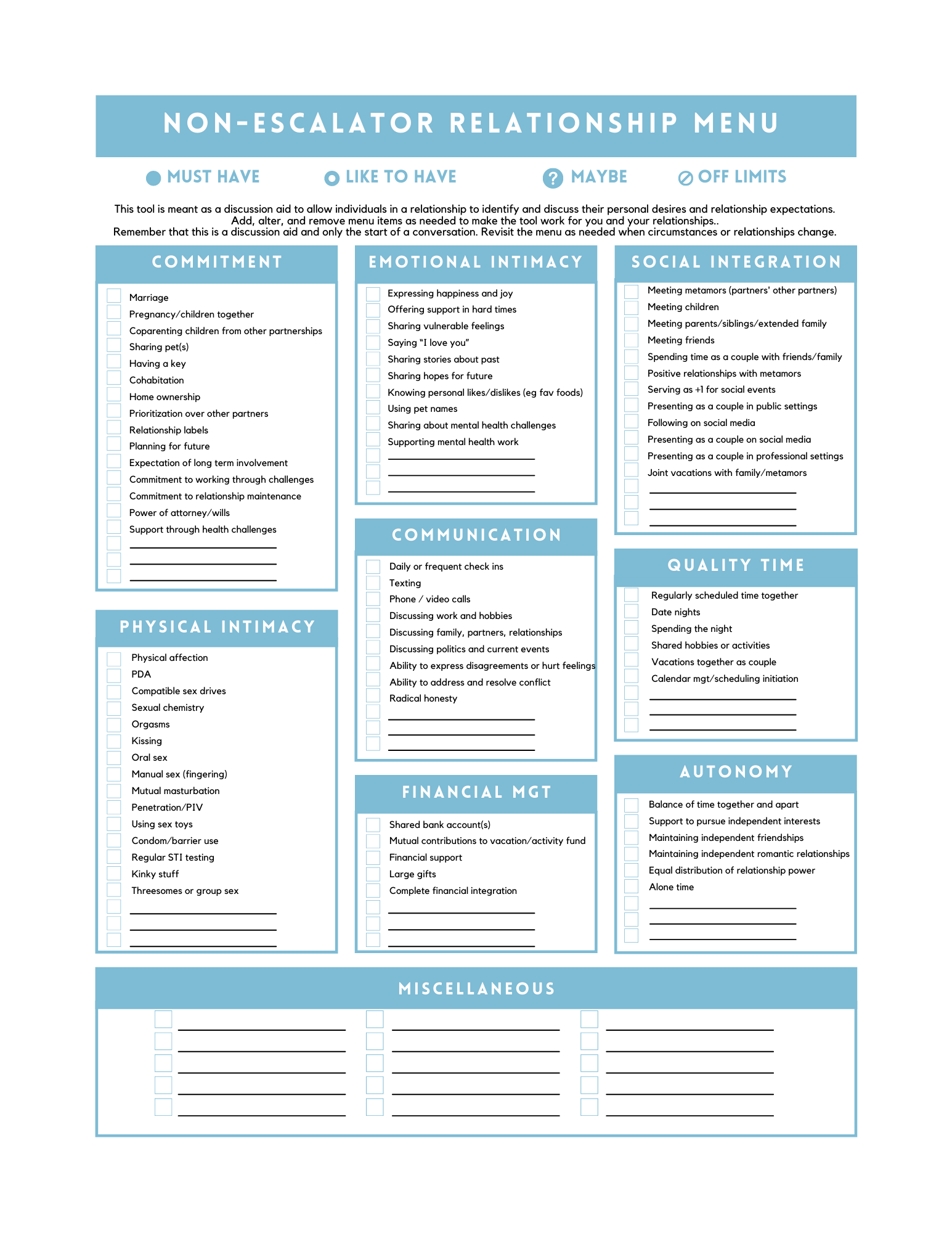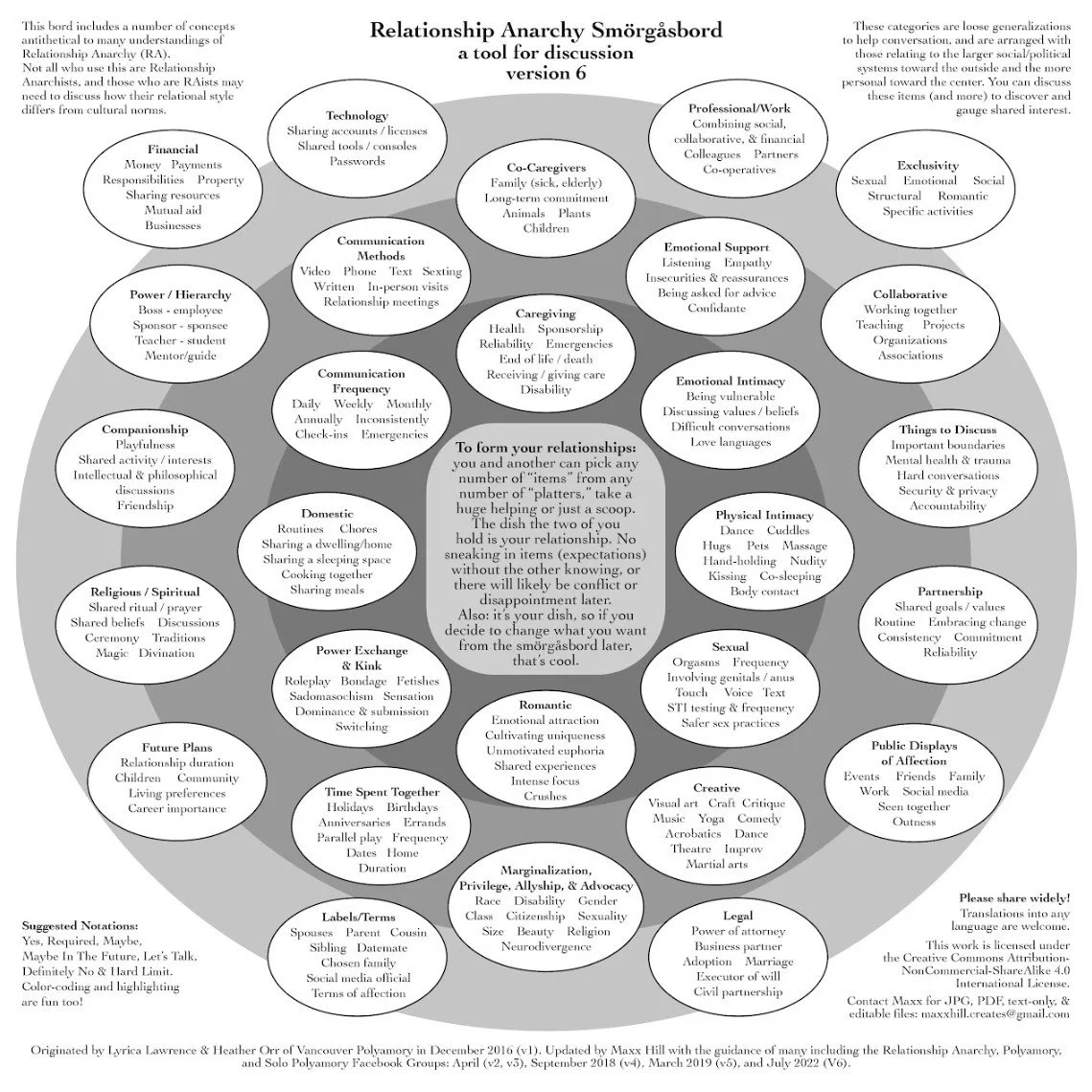 December 2016 (v1). Updated by Maxx Hill with the suggestions, guidance, and feedback of many, including the Relationship Anarchy, Polyamory, and Solo Polyamory Facebook Groups and commenters on Instagram: April (v2, v3), September 2018 (v4), March 2019 (v5), and July 2022 (v6).